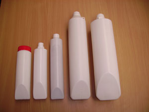 Oval-Schräghals-Keilbodentuben und Vierkantdosen aus Polyethylen und Polypropylen.